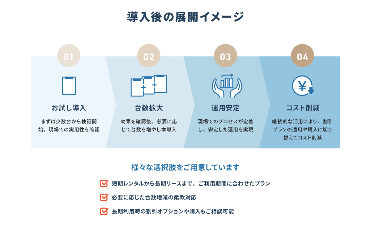 現場の用途や運用期間に応じて最適なプランをご提案いたします。長