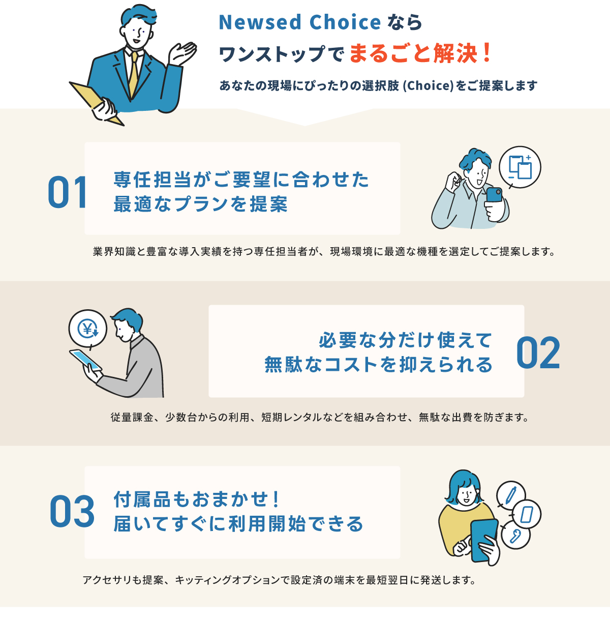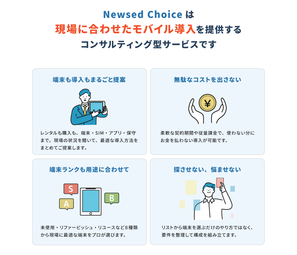 Newsed Choiceでは端末だけでなく、SIMカードの手配やアプリの